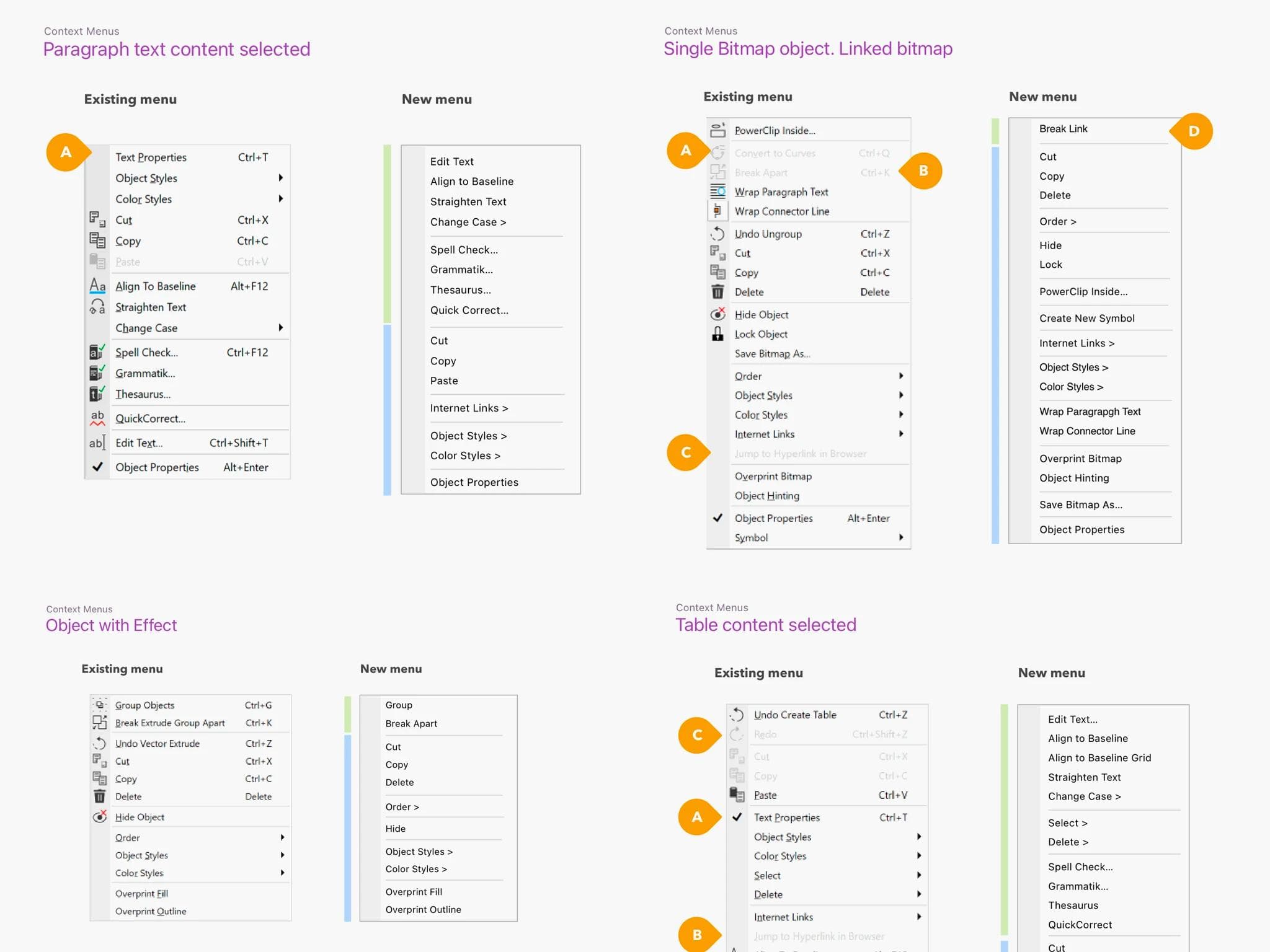 In the Windows version, context menus had no consistent ordering logic — each was built ad-hoc, making the experience unpredictable for users and difficult to maintain.