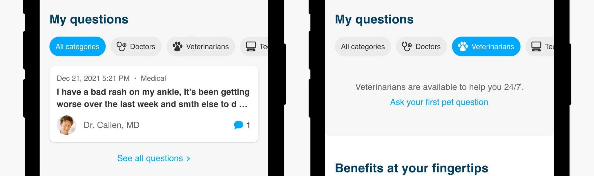 - Smaller question cards. Simplified cards take 3× less vertical space, freeing room for benefits, experts, and category-specific features.