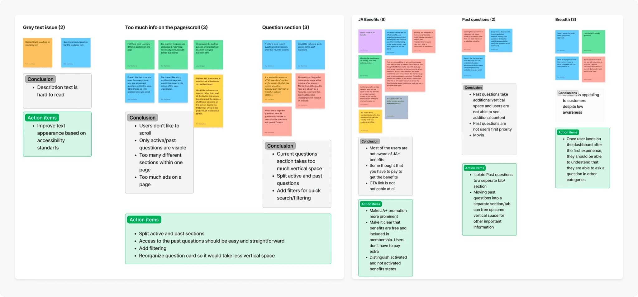 User interviews: Active customers who had submitted at least 2 questions in the past 3 months were given access to a test account and asked to navigate freely while thinking aloud.