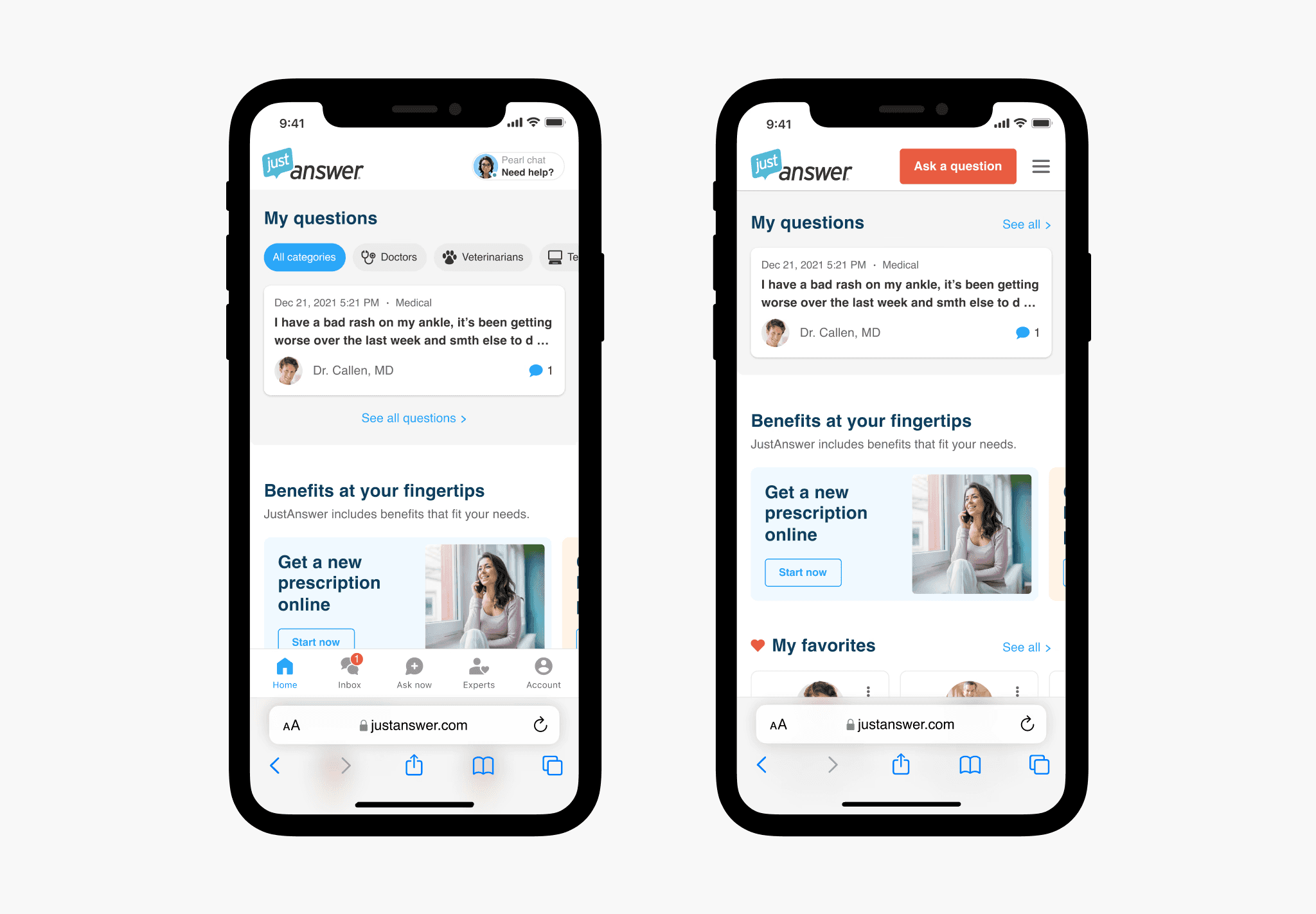 By 2022, mobile users on JustAnswer had grown to nearly 70% of the total user base — but the product had never been designed with mobile in mind.